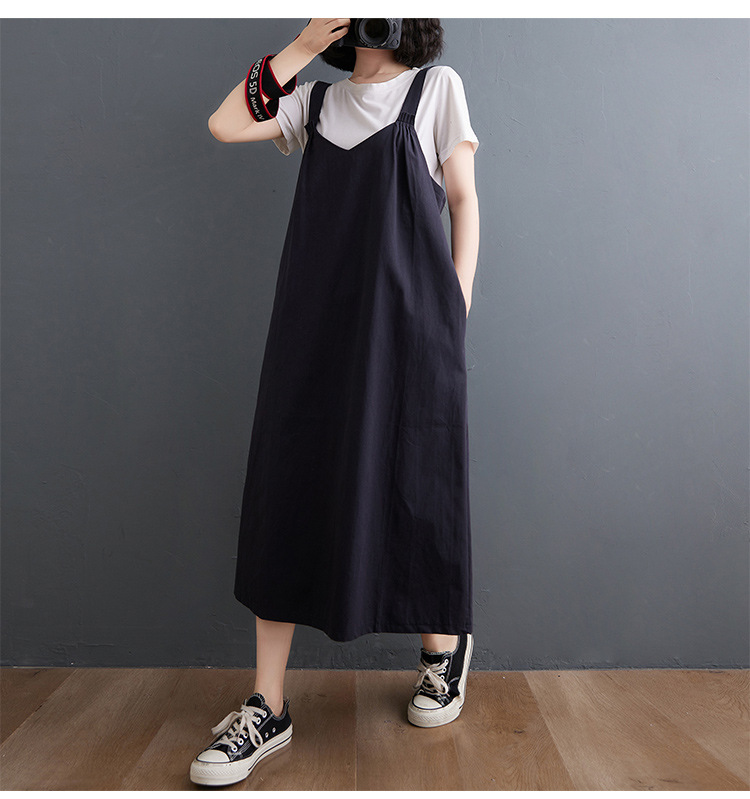 夏のルーズな大きいサイズのミッドレングスドレス全体画像